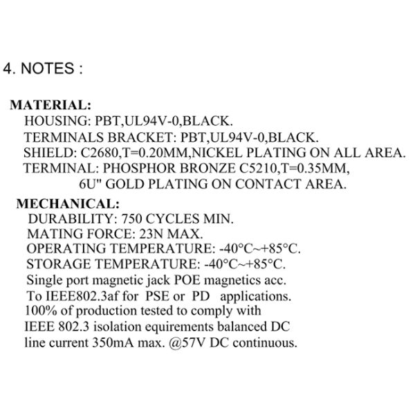 | CONTACT MATING AREA PLATING | GOLD 6U'' PLATING |